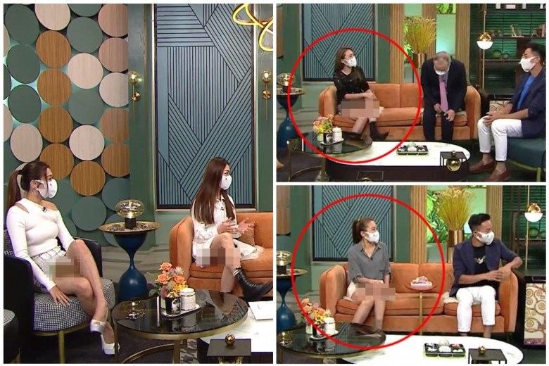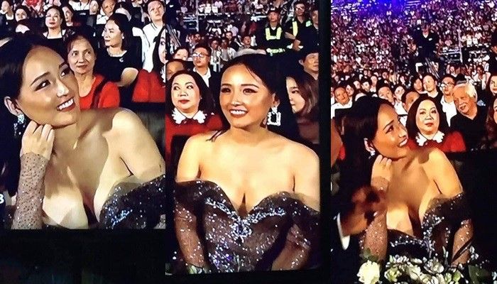Cụ thể, ngồi trên chiếc ghế cao, mẫu chân váy quá ngắn đã vô tình "phản chủ", để lộ nội y trước khi sao nữ kịp đổi tư thế gác chân để che chắn. Dù hình ảnh nhạy cảm này chỉ xuất hiện vài giây nhưng đã nhanh chóng lọt vào mắt của nhiều khán giả và thu hút làn sóng bàn tán rầm rộ trên mạng xã hội. Nhiều người chỉ trích cô vì đã có nhiều năm kinh nghiệm ăn mặc vẫn lựa chọn 1 thiết kế "non tay" khi lên sóng.