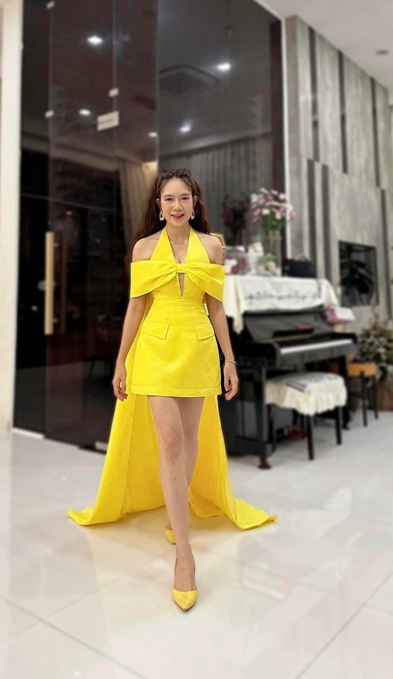 Trước đây, Minh Hà cũng từng khoe đôi chân nuột nà với chiếc đầm vàng bất đối xứng.