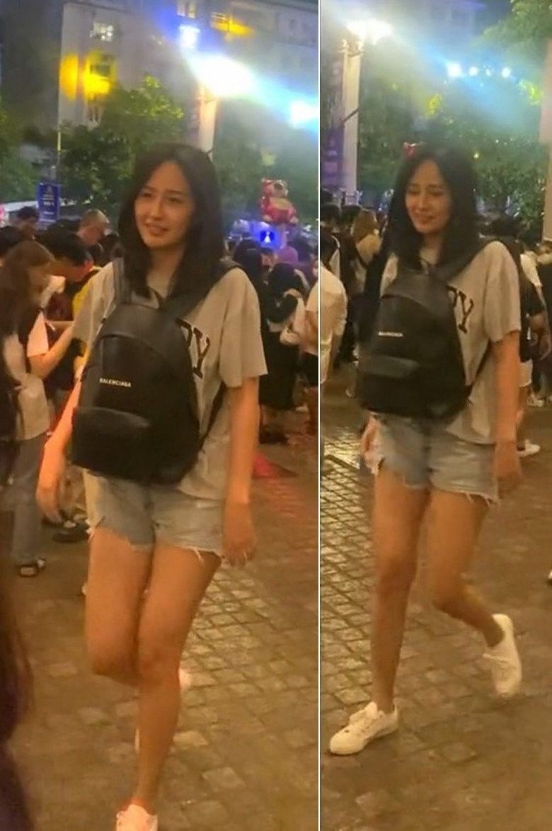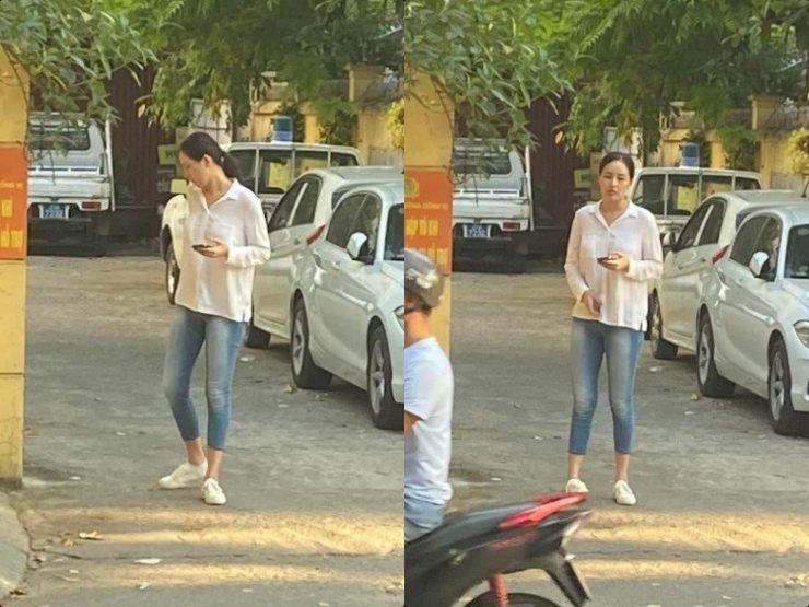 Vào khoảng tháng 9, cô lọt "tầm ngắm" của người đi đường với nguyên set đồ mang 2 gam màu cơ bản. Người đẹp trông khá cao lớn với chiếc quần jeans ống lửng và áo sơ mi trắng chất đũi. Có lẽ vì không sơ vin áo vào trong quần nên trông cô có hơi mập mạp.