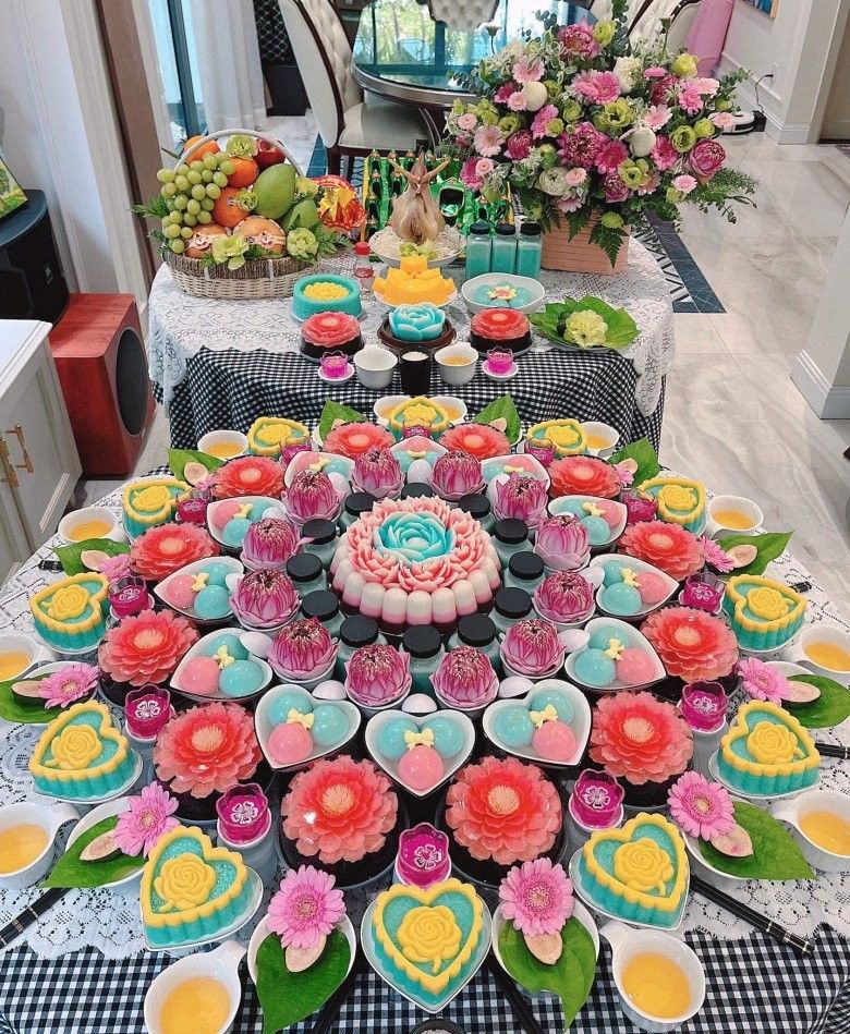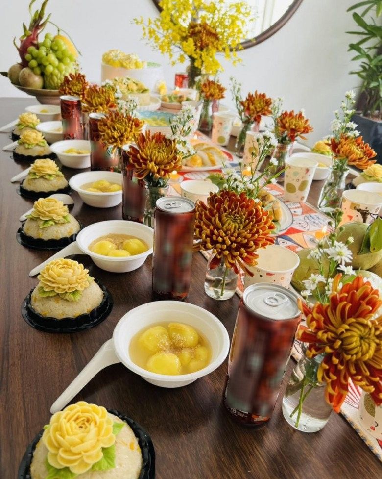 Mọi thứ đểu tỉ mẩn, chỉn chu trong từng chi tiết. Cả bàn tiệc khiến mọi người không thể chê.