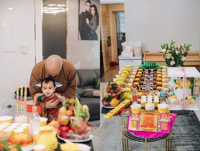 Cụ thể, mừng sinh nhật 1 tuổi của con gái yêu, cặp bố mẹ đã kỉ niệm nhiều ngày liên tiếp vừa qua bao gồm chụp bộ ảnh kỉ niệm và tổ chức cúng thôi nôi cho em bé. MC Vân Hugo chu đáo đặt một mâm cúng với đầy đủ các lễ vật như hoa quả, bánh sinh nhật, bánh thạch, xôi, chè, lá trầu, quả cau, trà, nến, gà luộc, vàng mã, ... được xếp đặt cẩn thận, đẹp mắt trên bàn, cắt tỉa tỉ mẩn từng li từng tí.