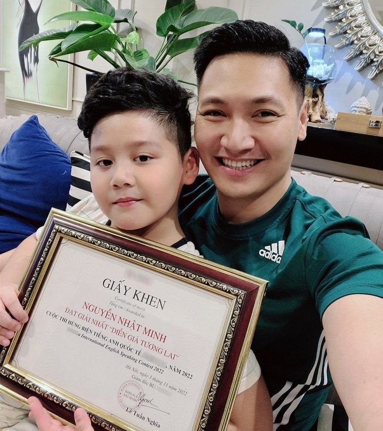 Bên cạnh việc rèn luyện thể chất, vợ chồng Mạnh Trường cũng khéo léo rèn luyện vốn ngoại ngữ. Cả hai con Mạnh Trường hiện đều có thể nói tiếng Anh trôi chảy. Bé Bon vừa qua còn đạt được giải nhất về hùng biện tiếng Anh do trường tổ chức khiến ông bố không khỏi tự hào, dành nhiều phần thưởng cho con trai.
