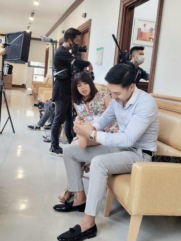 Anh chăm sóc vợ chu đáo.