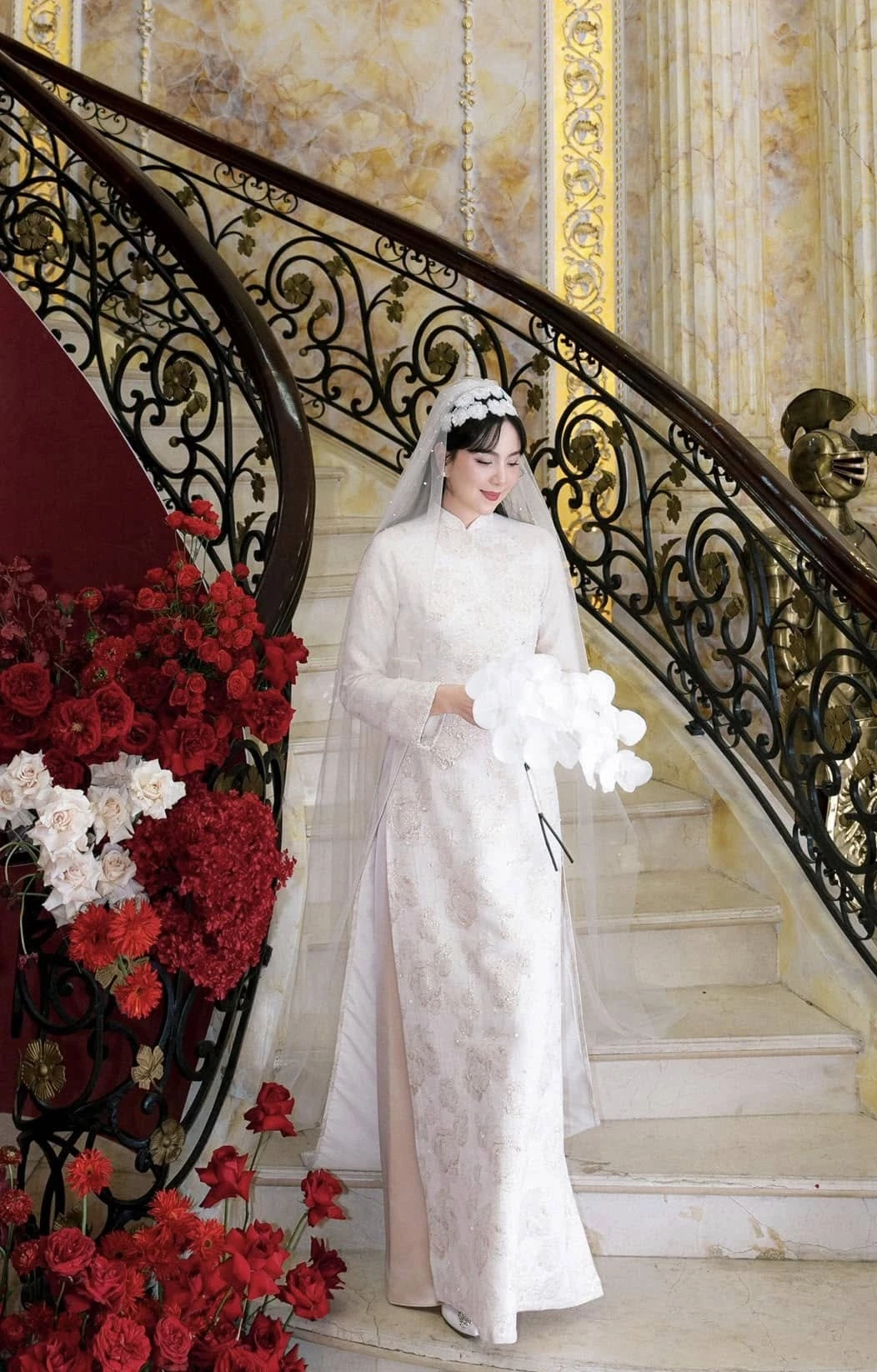 Trước đó, Mai Ngọc từng hé lộ một vài góc chụp bên trong biệt thự của nhà chồng. Ngoài dinh thự riêng, gia đình của doanh nhân Quốc Thắng còn có trung tâm tiệc cưới mang phong cách kiến trúc tương tự. Đây cũng là nơi diễn ra lễ thành hôn của vợ chồng nữ MC hồi cuối năm 2024.
