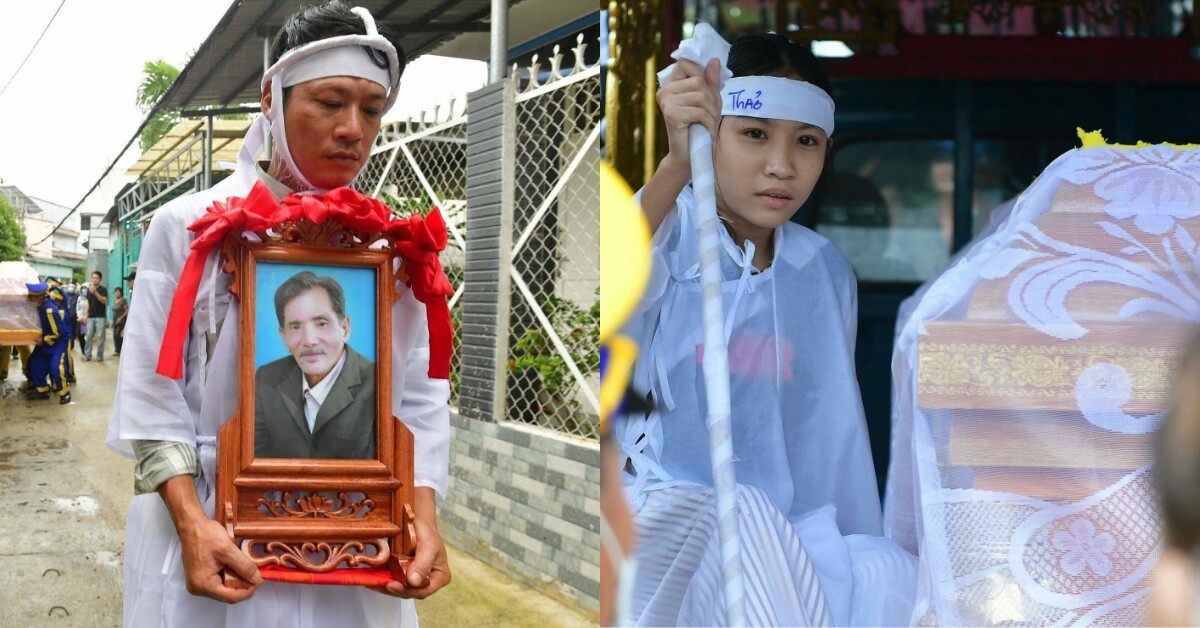Con trai và con gái của Thương Tín trong ngày đưa linh cữu của bố đi an táng.