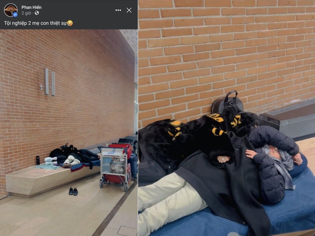 Đặc biệt, Phan Hiển còn tiết lộ hình ảnh khổ cực của vợ con tại sân bay. Theo đó, vì bị hủy chuyến vào phút chót, cần tiết kiệm chi phí nên Khánh Thi và Kubi đã phải nằm ngủ ở hành lang nhà chờ. Như chia sẻ trước đó của Phan Hiển, thời tiết tại đây đang rất lạnh. Nhìn vợ con co ro dù đắp áo khoác lông, Phan Hiển cảm thấy xót xa, nhất là khi Khánh Thi còn đang mang bầu.