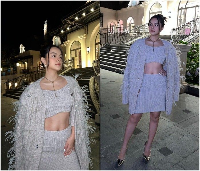 Nếu nhìn kỹ, dân tình còn thấy người đẹp lấp ló đường cong và đường cơ bụng - minh chứng cho nỗ lực về dáng tuyệt vời.