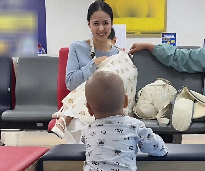 Người mẹ rất tế nhị khi cho con bú nơi công cộng.