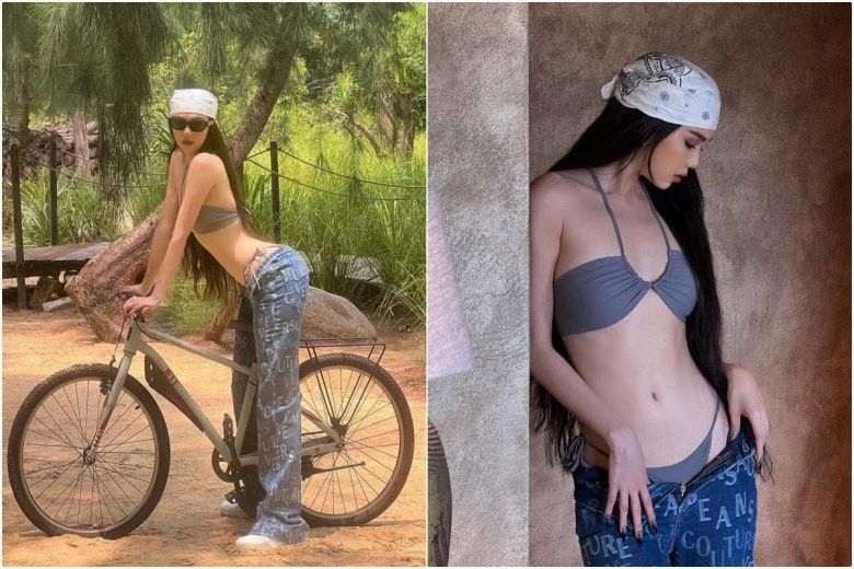 Dù không mặc bikini hai mảnh hở hang, nhưng bà mẹ một con lại khéo kéo trễ cạp quần vô cùng sành điệu. Cộng với tông màu vàng trắng kết hợp đầy hút mắt, bức ảnh nào của Đông Nhi cũng được "thả tim" nồng nhiệt.