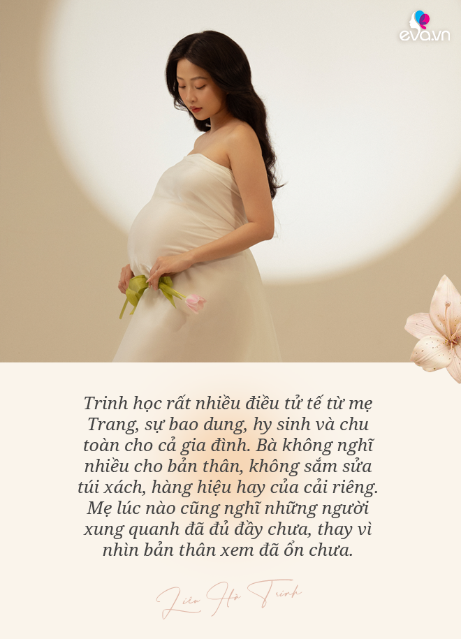 Quan trọng, Trinh học được rất nhiều điều tử tế từ mẹ Trang, sự bao dung, hy sinh và chu toàn cho cả gia đình. Bà không nghĩ nhiều cho bản thân, không sắm sửa túi xách, hàng hiệu hay của cải để riêng. Mẹ lúc nào cũng nghĩ những người xung quanh đã đủ đầy chưa, thay vì nhìn bản thân trước đã ổn chưa. Trinh thương mẹ từ lúc ấy và mong được đồng hành với bà trong một gia đình.