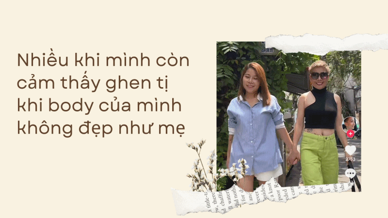 Nói về điều này thì thực ra mình cảm thấy có chút tự ti. Đôi khi mẹ hay bảo mình chụp ảnh cùng mẹ nhưng mình thường ít khi nhận lời chụp ảnh cùng mẹ. Vì nhìn mẹ rất trẻ trung lại năng động nên mình cảm thấy hơi ngại khi đứng cùng mẹ.