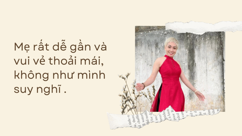 Con muốn cảm ơn mẹ vì mẹ luôn ủng hộ con. Mẹ luôn cảm thông cho con từ quá khứ và hiện tại. Với con, là mẹ chồng tâm lý, thấu hiểu, chu đáo nhất Con cảm ơn mẹ rất nhiều!