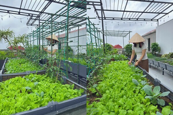 Tại phường Nhân Hòa, Bắc Ninh, có một người mẹ trẻ tên là Thương, 34 tuổi, hiện đang làm công việc tự do. Hơn 4 tháng trước, khi ngôi nhà mới của chị hoàn thiện, chị đã quyết định biến sân thượng rộng khoảng 90m² thành một khu vườn rau xanh tươi tốt với đủ loại thực phẩm.