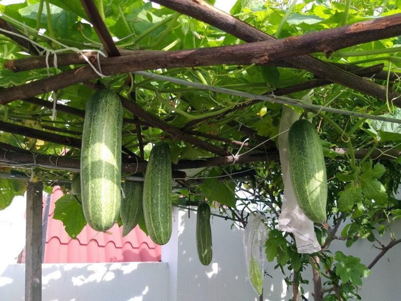 Bầu, dưa chuột,... sum suê trái.