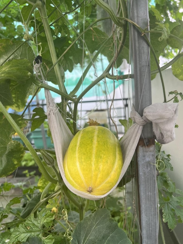 “Buồn quá tôi đi mua cây, rồi những lúc tâm trạng vui tôi cũng mua cây, mua hoa. Lúc đầu chỉ là vài chậu, sau đó là nhiều chậu. Tôi cứ như một con ong chăm chỉ, con kiến tha đất, tha từ ngày này qua ngày khác, tháng này qua tháng khác, rồi năm này qua năm khác, giờ mới thành cái vườn trên mây với đủ thứ rau và cây ăn trái”, chị Tuyền kể.