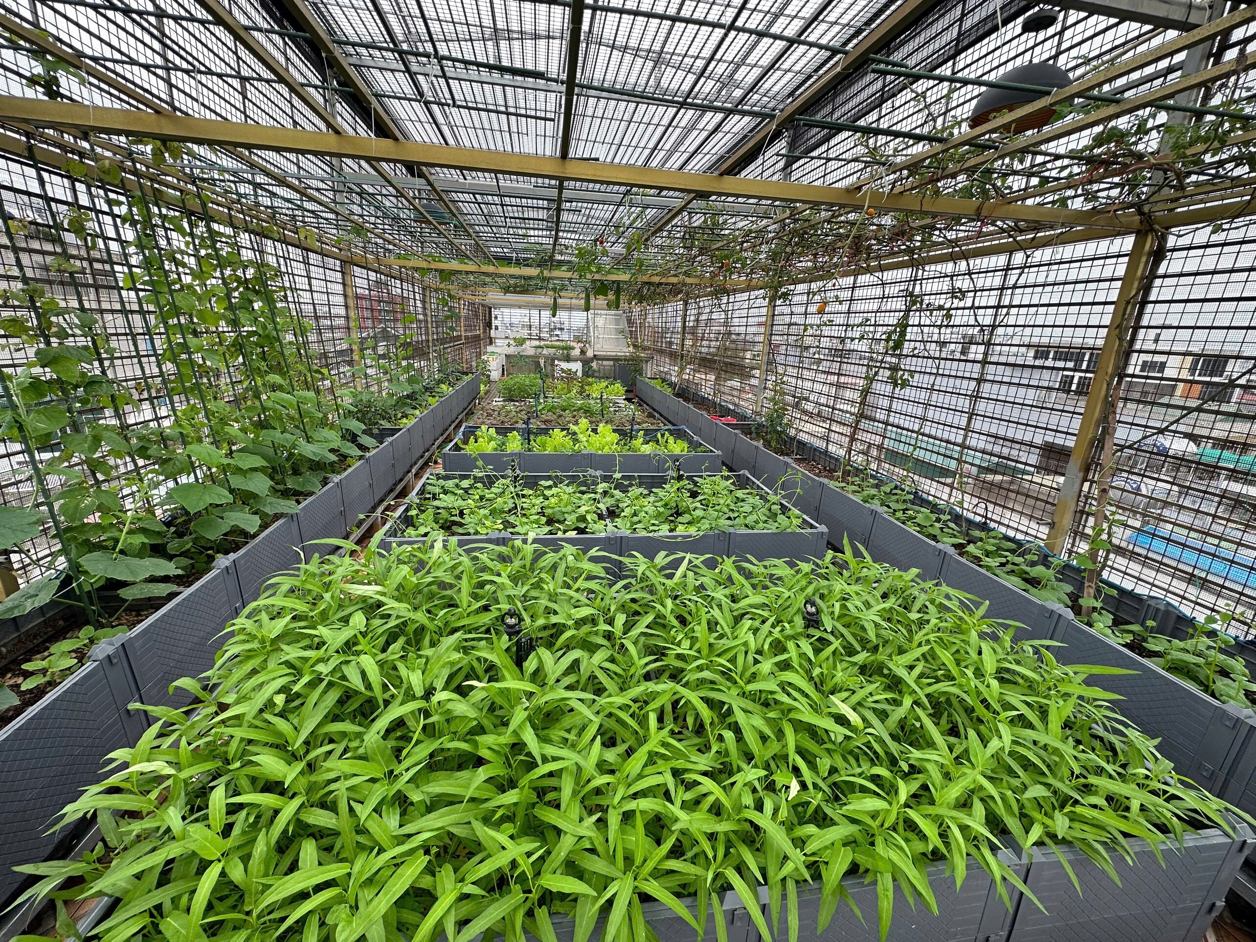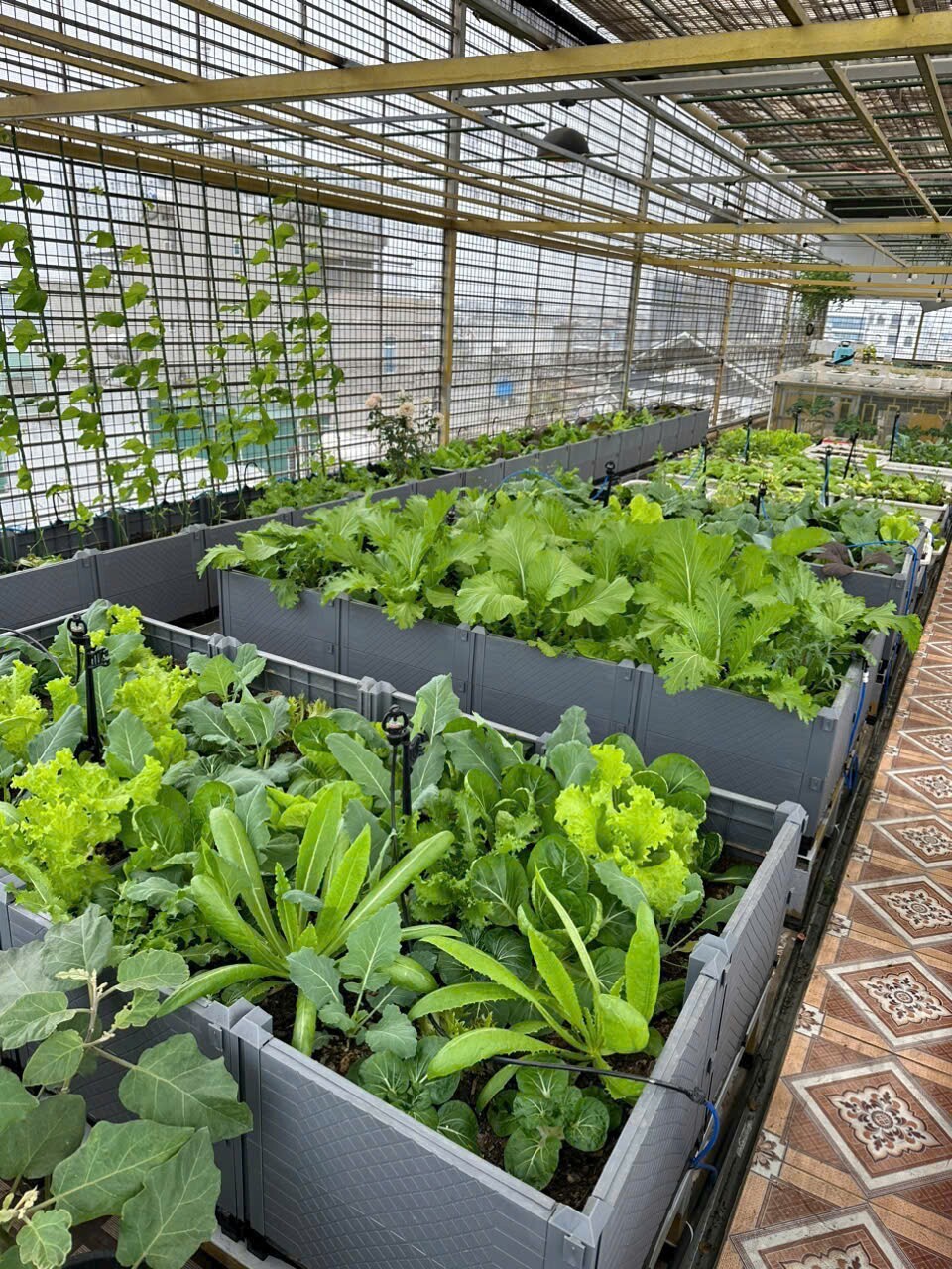 Nhưng, khó khăn lớn nhất của vườn sân thượng không nằm ở kỹ thuật, mà ở… thời tiết. Vì mưa lớn có thể làm xối đất, trôi phân và phá gốc rau chỉ trong vài phút. Để tránh điều này, chị Hương lắp hệ thống mái kéo bằng màng nilon Inslen. Khi trời sầm tối, chị chỉ cần kéo mái lại là đủ để bảo vệ toàn bộ vườn rau bên dưới.