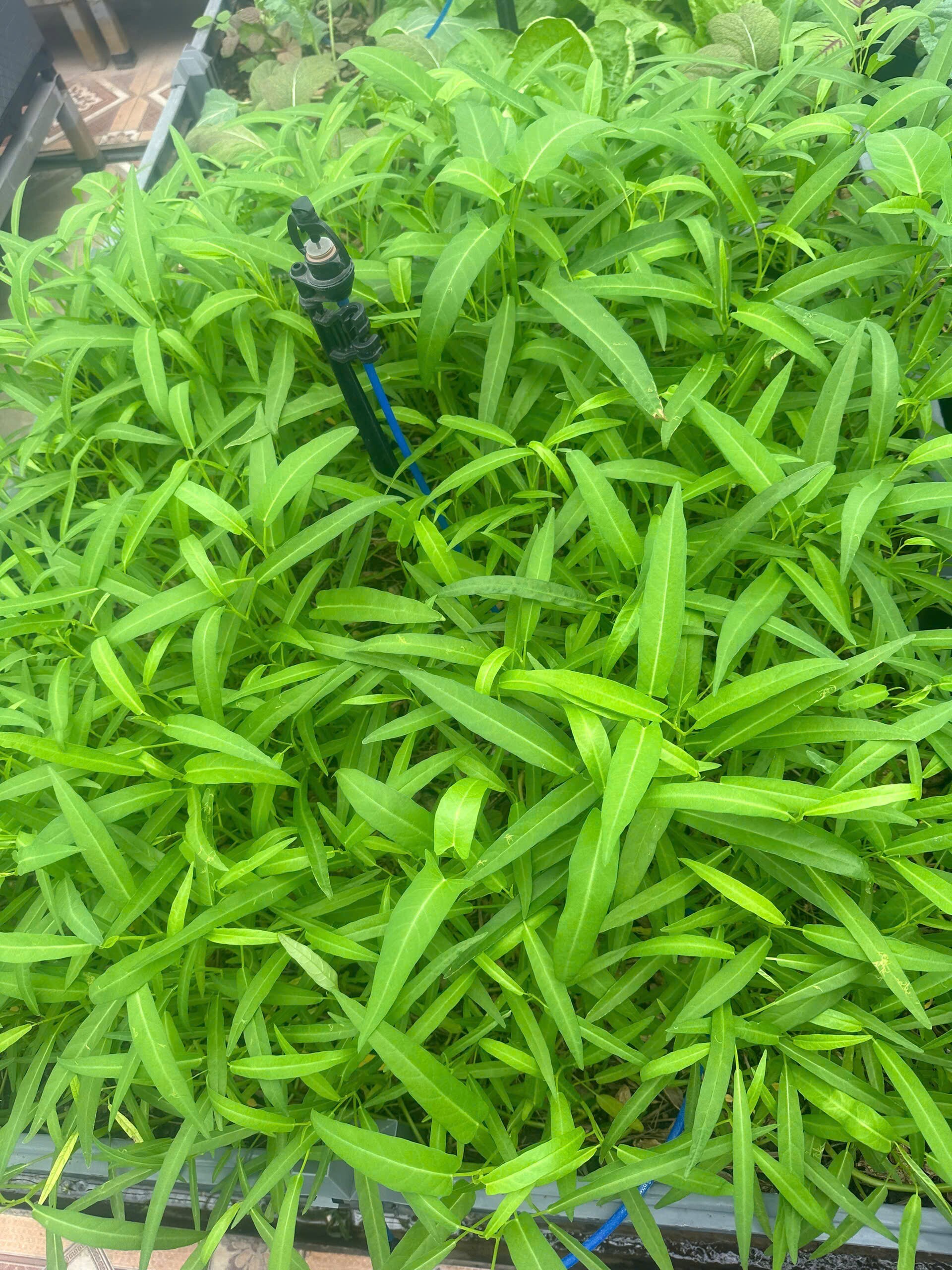 Khoảng một tuần sau khi trồng, chị bổ sung đạm cá tự ủ, rồi tới hỗn hợp chuối trứng sữa để giúp cây xanh mạnh. Theo chị, nếu đất đủ dinh dưỡng và giàu vi sinh, cây sẽ khỏe, mà cây khỏe thì gần như không cần can thiệp nhiều.