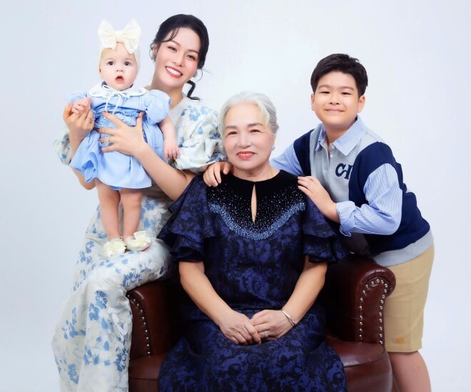 Mới đây, Nhật Kim Anh đăng tải bộ ảnh gia đình chụp cùng mẹ ruột và 2 con - bé Bửu Long (còn gọi là Tin) và bé Julia. Nữ diễn viên nhắn nhủ: "Mẹ yêu của con, và các con yêu của mẹ".