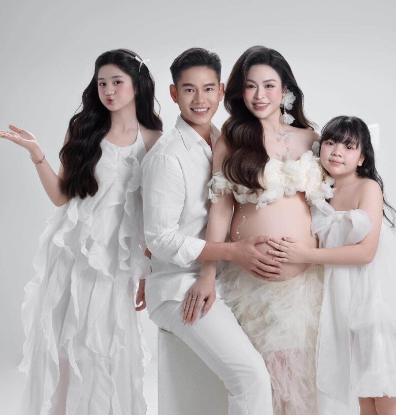 Thai kỳ hạnh phúc với sự đồng hành của chồng trẻ và 2 cô con gái riêng xinh xắn