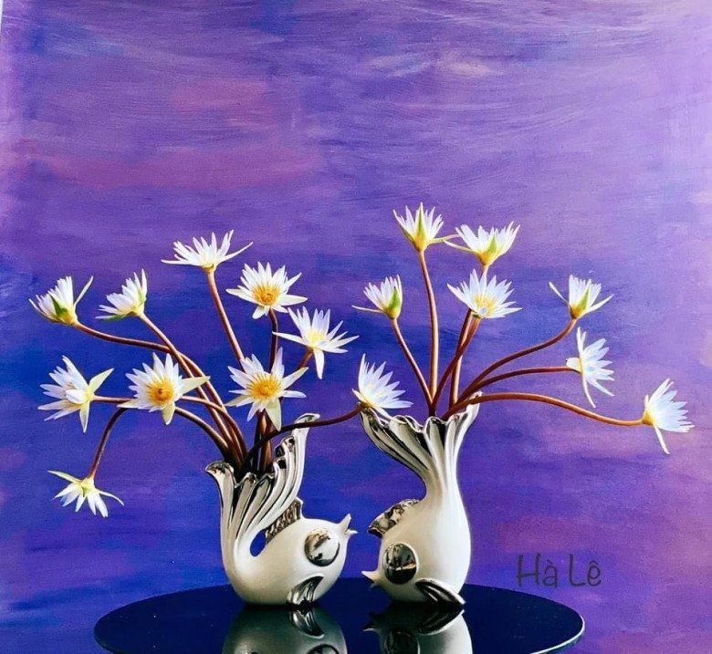 Chị Hà bộc bạch bản thân phải lòng hoa súng từ lâu vì vẻ đẹp thanh tao và hương thơm nhẹ nhàng. Thế nhưng việc chinh phục loại hoa này không hề dễ dàng. Có lần, một người cắm hoa dày dặn kinh nghiệm như chị Hà cũng lỡ hẹn khi cắm hoa súng King of Siam.