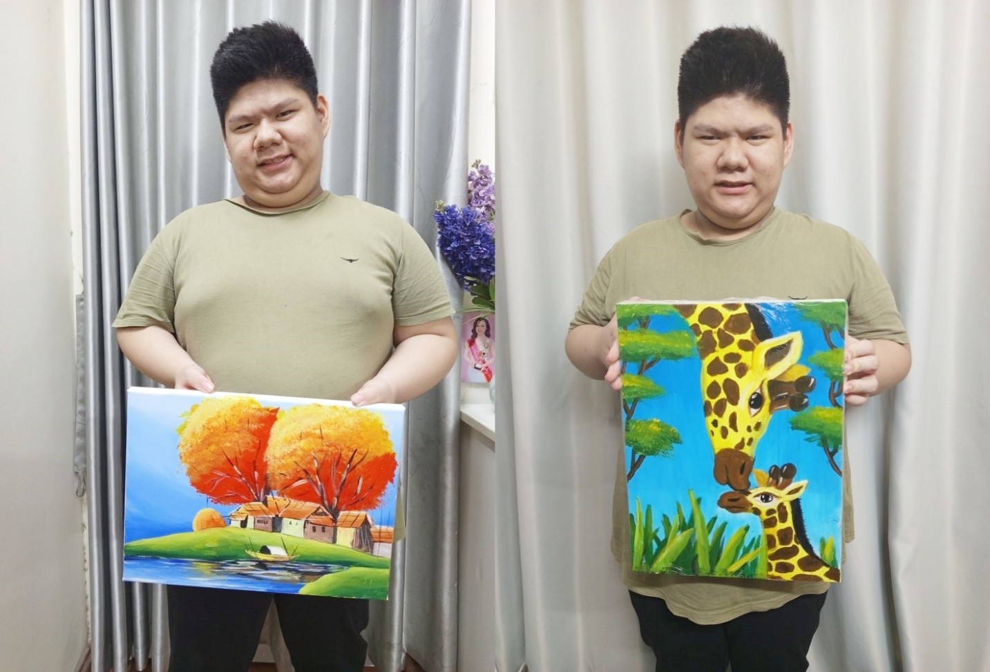 Khi con được khoảng 9 tuổi, chị phát hiện con ở nhà rất hay vẽ và có thể vẽ lên bất cứ thứ gì xung quanh. Điều đặc biệt là đó không phải những nét vẽ nguệch ngoạc mà có hình dáng rõ ràng và rất bắt mắt. Chị đưa con tới trung tâm và được thầy giáo động viên nên cho con học vì bé có năng khiếu hội họa.