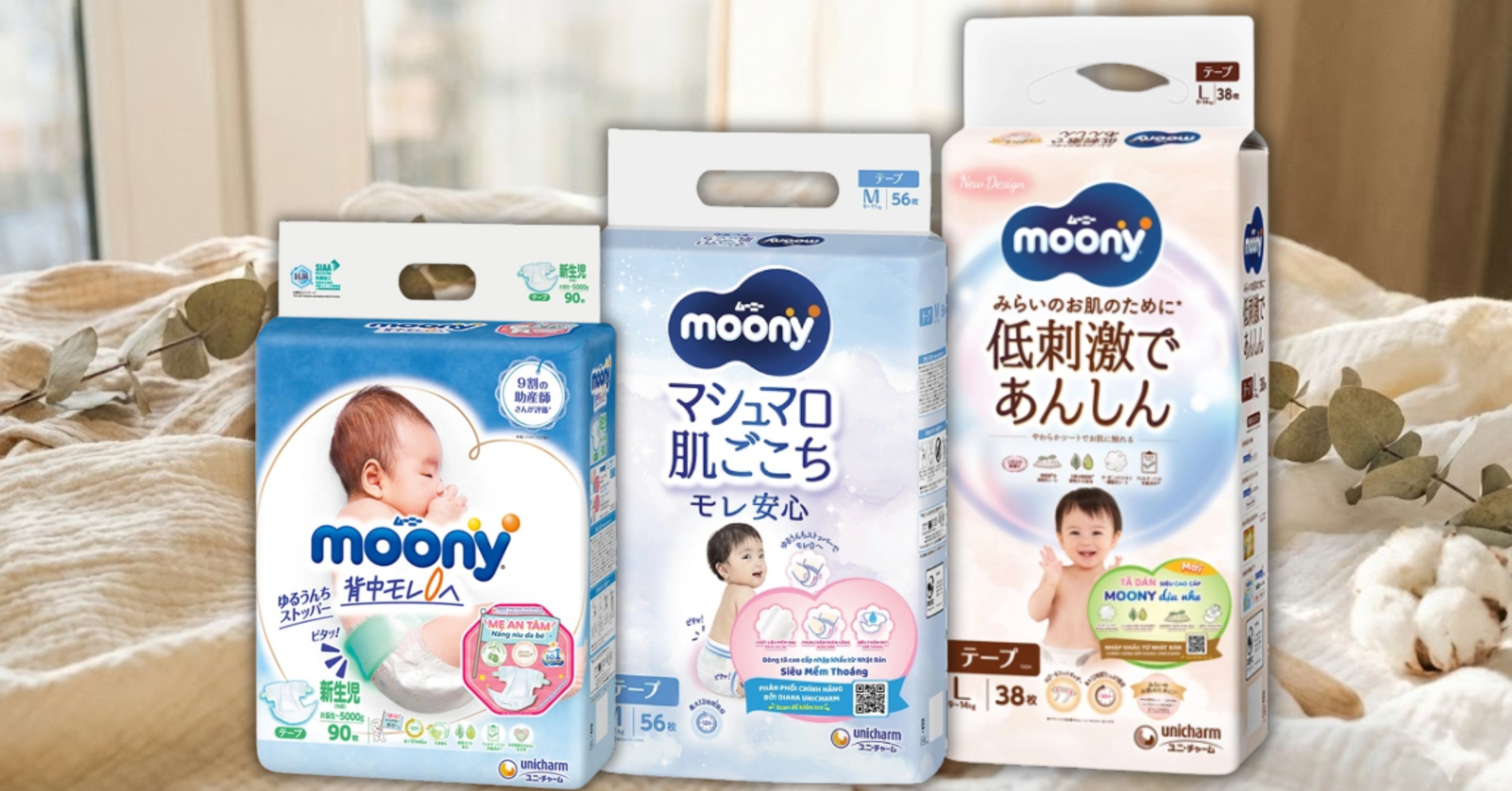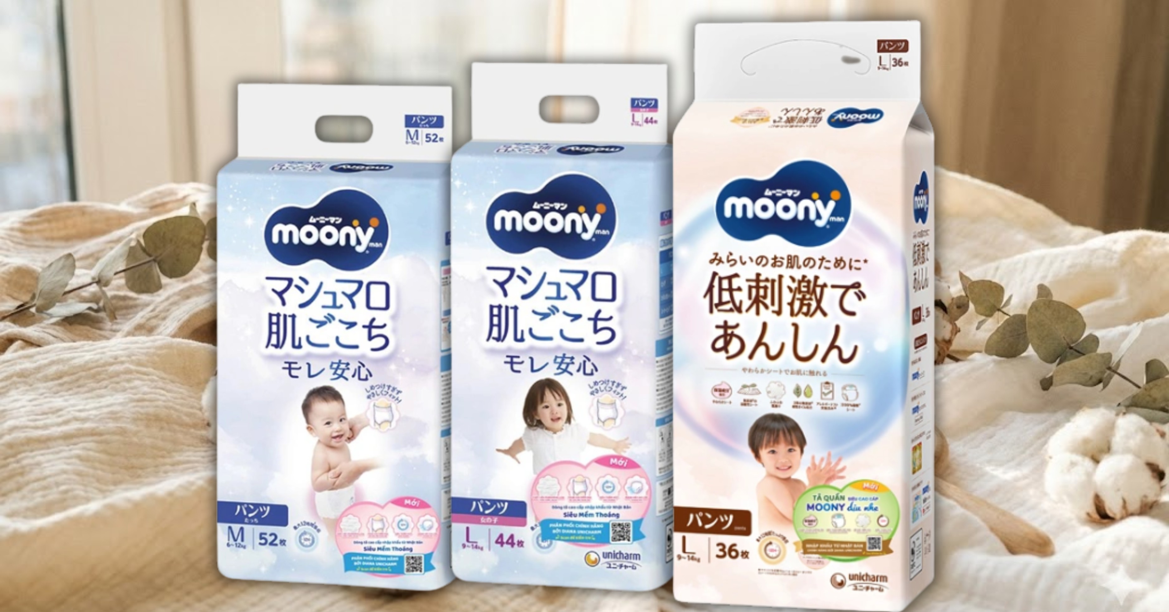 Bỉm Moony là thương hiệu cao cấp đến từ Nhật Bản, nổi tiếng với chất liệu mềm mại, khả năng thấm hút vượt trội và thiết kế tối ưu cho từng giai đoạn phát triển của bé. Hiện nay, Moony có hai dòng sản phẩm chính là bỉm dán và bỉm quần, đáp ứng nhu cầu sử dụng đa dạng của mẹ và bé.