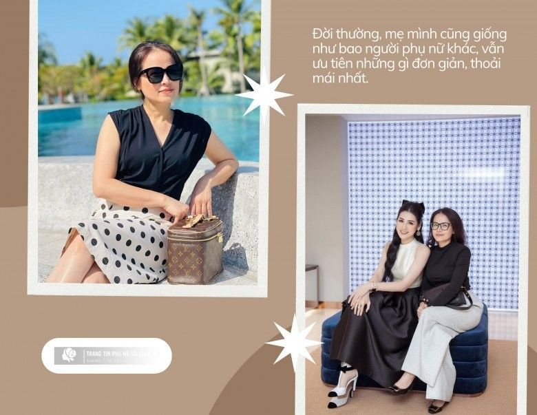Mẹ luôn nói rằng, mẹ chỉ đứng phía sau sắp xếp, hỗ trợ để cho công việc của mình được thuận lợi hơn, giống như san bớt gánh nặng để giúp đỡ con gái. Cho dù con bận rộn, con vẫn có thời gian để sống và tận hưởng tuổi trẻ. Mẹ không muốn vì cuốn theo công việc mà con gái lại bỏ lỡ những ngày tháng thanh xuân đẹp nhất trong cuộc đời. Giờ đây, khi con gái đi lấy chồng, sinh con và mẹ lên chức bà ngoại thì quan điểm đó vẫn vậy, mình vẫn luôn có mẹ, gia đình và những người thân yêu bên cạnh hỗ trợ nhiệt tình.