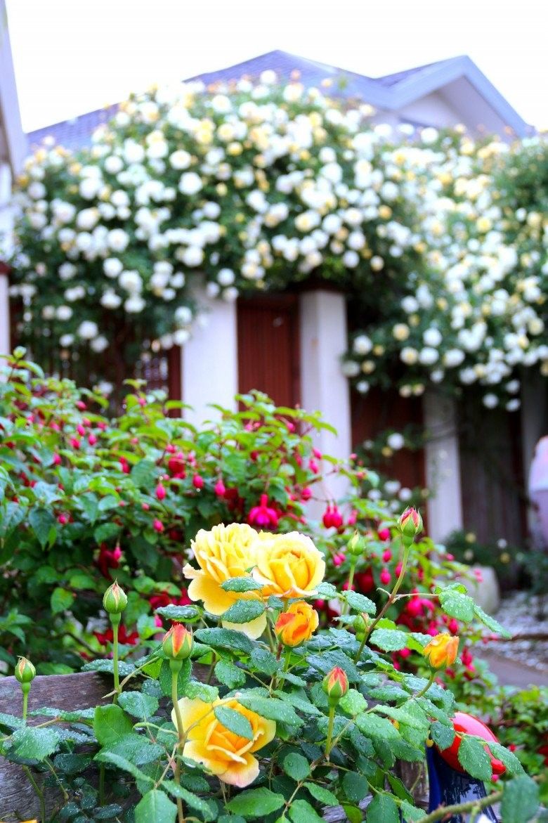Ngôi nhà hoa hồng của chị Anh Đào, hiện đang sống ở New Zealand cùng chồng và các con, được nhiều chị em yêu hoa ao ước. Nhìn tổng thể, ngôi nhà không khác gì một bức tranh hay tòa lâu đài trong truyện cổ tích với vô số bông hoa xinh đẹp đủ sắc màu nở rộ.