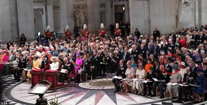 Vì không ngồi cạnh nhau nên Kate - William và Meghan - Harry không phải bối rối khi chạm mặt.