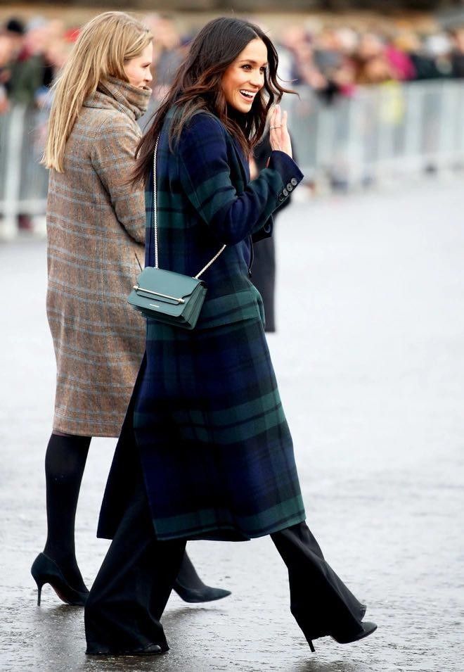 Vợ Hoàng tử Harry ứng dụng công thức mang giày cao gót cùng tông với màu quần để không khiến cơ thể bị phân khúc và nhờ đó "ăn gian" thêm chiều dài đôi chân.