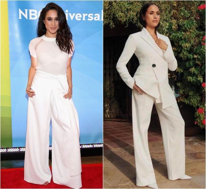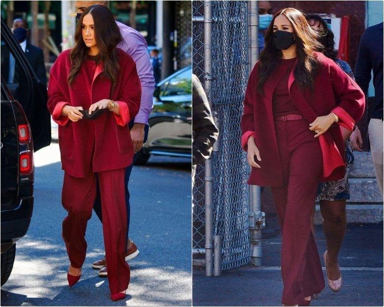 Để hoàn thiện style quyền lực nhưng không hề đơn điệu hay nhàm chán, Meghan ưu tiên kết thân cùng blazer và ứng dụng cả cây màu nổi bật. Tất nhiên, để tôn lên hiệu ứng vóc dáng hiệu quả nhất, quần ống suông cô chọn cũng luôn có cạp cao và dài quét đất.