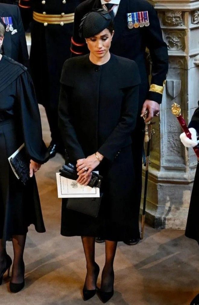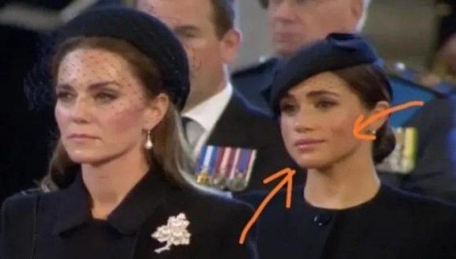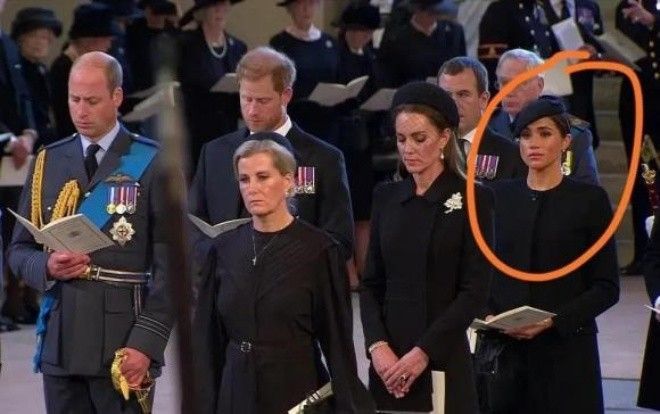 Nhưng, theo cách nói của một số cư dân mạng, Megan là một người phụ nữ luôn "gây chuyện" khắp nơi. Dân chúng Anh bắt đầu phàn nàn vì những cử chỉ, nét mặt của vợ Hoàng tử Harry thời điểm diễn ra lễ tang của Nữ hoàng Elizabeth II. Trong khi các thành viên hoàng gia thương tiếc Nữ hoàng với biểu hiện trang trọng như cúi đầu thì Meghan lại ngẩng cao một cách tự tin. Thậm chí khóe miệng của cô khẽ nhếch lên khiến không ít người khó chịu.