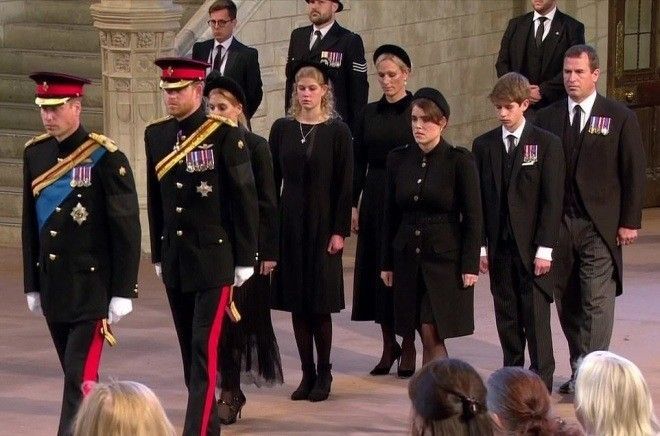 Harry mặc quân phục cùng với anh trai trong thời điểm canh linh cữu Nữ hoàng.