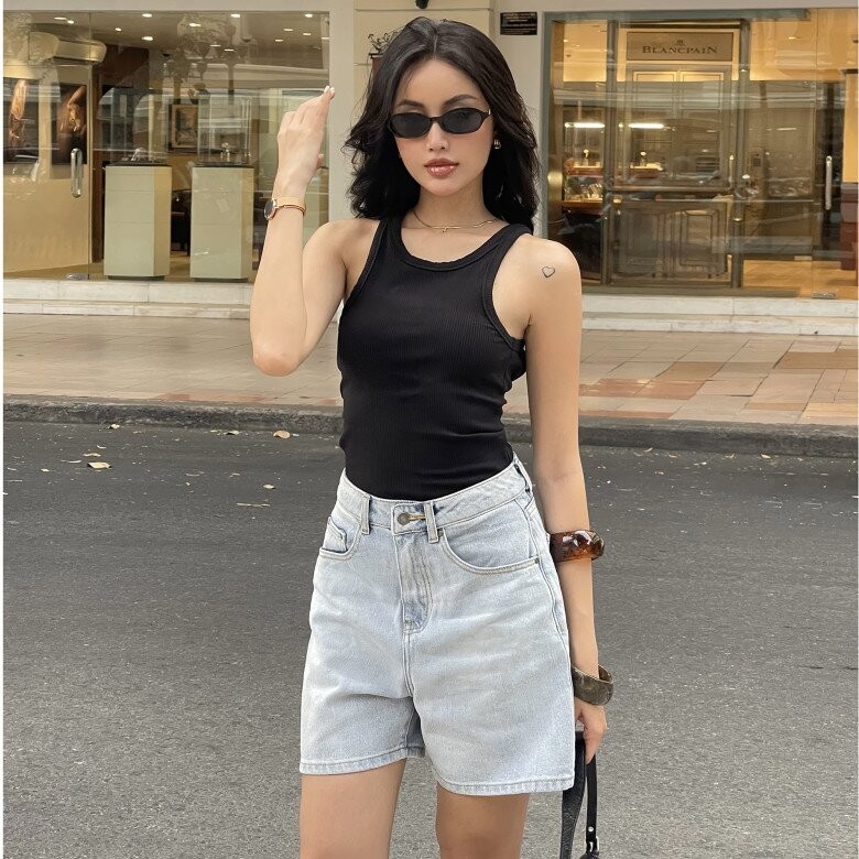 Sở hữu vòng eo rõ nét và tỷ lệ cơ thể cân đối, bạn có thể dễ dàng chinh phục nhiều kiểu quần short denim khác nhau. Tuy nhiên, thiết kế cạp cao ôm nhẹ vẫn là lựa chọn lý tưởng để tôn lên đường cong và làm nổi bật vóc dáng.