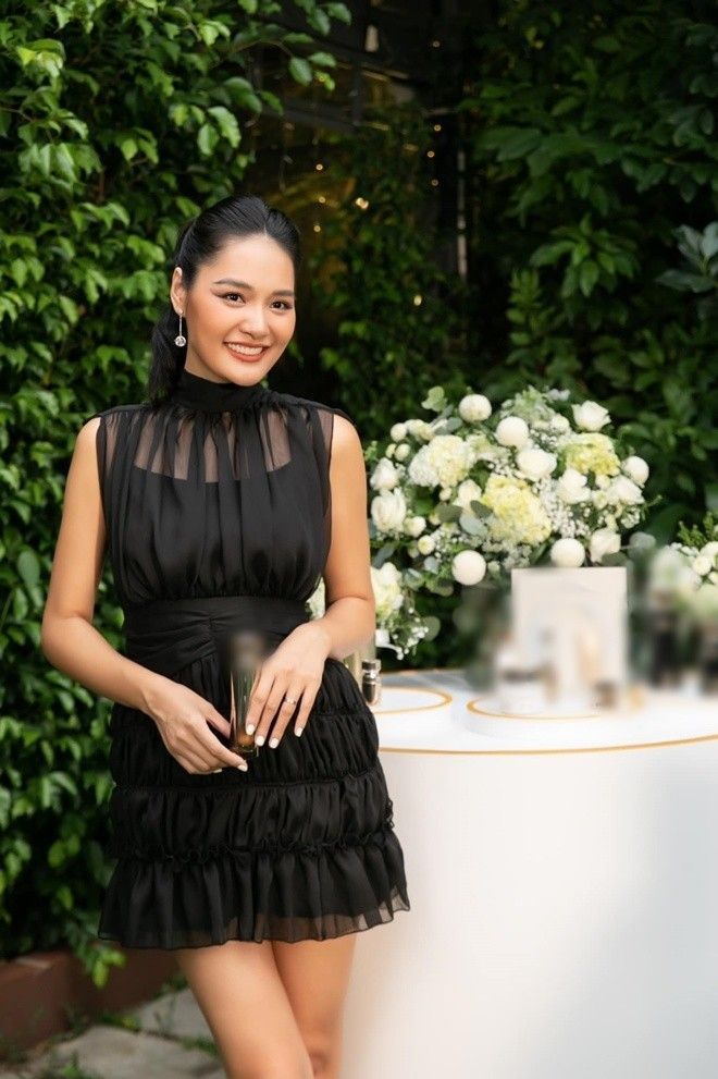 Tại sự kiện, Hoa hậu Hương Giang xuất hiện với chiếc váy đen thiết kế tinh giản. Nụ cười rạng rỡ của người đẹp luôn truyền năng lượng tích cực và gây thiện cảm với khán giả.