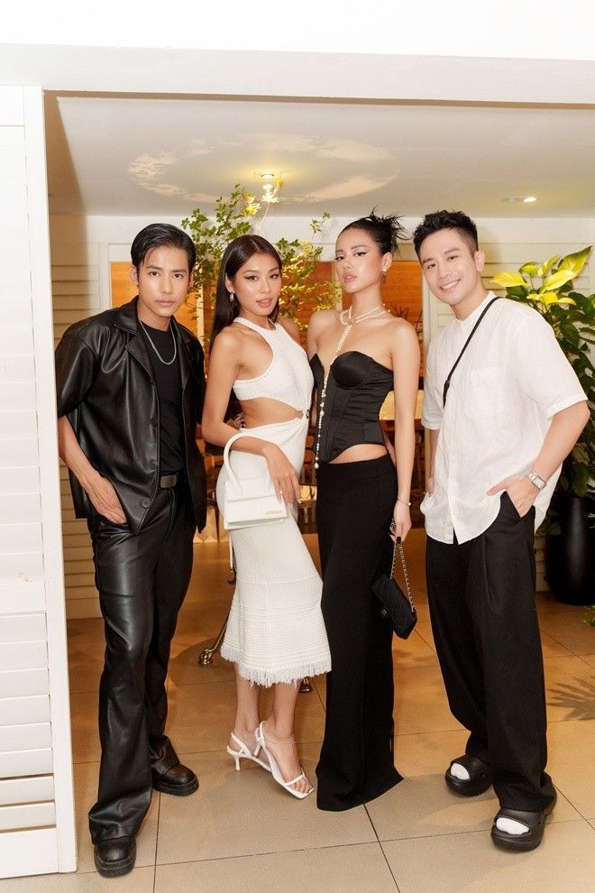 Khánh Linh "Trendy" luôn ấn tượng theo cách riêng tại mỗi nơi cô ghé đến. Người đẹp diện đầm cúp ngực cắt xẻ lạ mắt, phối cùng chân váy bút chì đồng điệu. Cô có nhiều khoảnh khắc đọ dáng với tân Á hậu Thảo Nhi Lê.