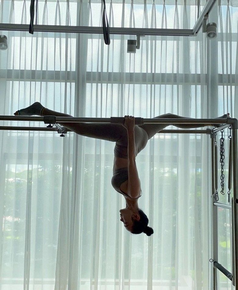 Sau khi quay xong phim cho dịp Tết, cô tức tốc "song kiếm hợp bích" cùng cô em gợi cảm là Ngọc Trinh với bộ môn rèn dáng sang xịn là Pilates.