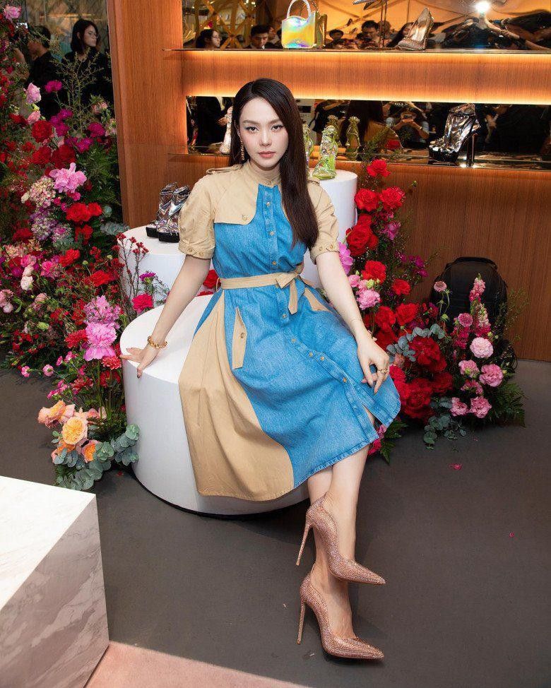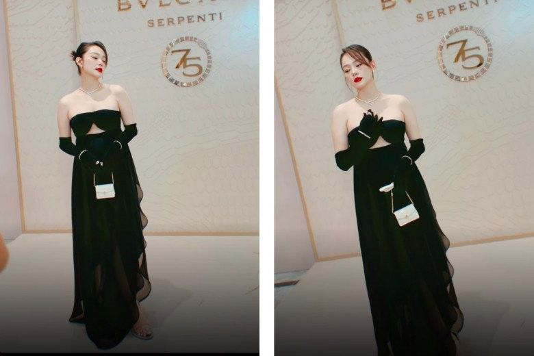Mới đây, sau khoảng thời gian du lịch nghỉ dưỡng bên gia đình, Minh Hằng vừa trở lại trước công chúng khi xuất hiện trong một sự kiện của nhãn hàng trang sức Bvlgari. Dù đã ở những tháng thứ 6 - 7 của thai kỳ thế nhưng Minh Hằng vẫn trông vô cùng thon gọn và rạng rỡ. Đặc biệt, "mẹ ỏng" diện trang phục khá sang trọng với chiếc váy cúp ngực màu đen, đi cùng các phụ kiện sang chảnh.