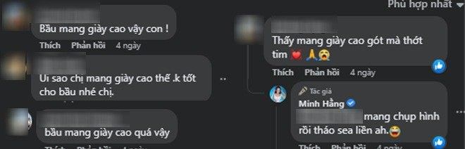 Hành động này của Minh Hằng nhận về nhiều lời góp ý. Tuy nhiên, Minh Hằng đính chính, bản thân chỉ mang cao gót khi chụp ảnh, chụp xong cô sẽ tháo ra và thay bằng giày bệt.