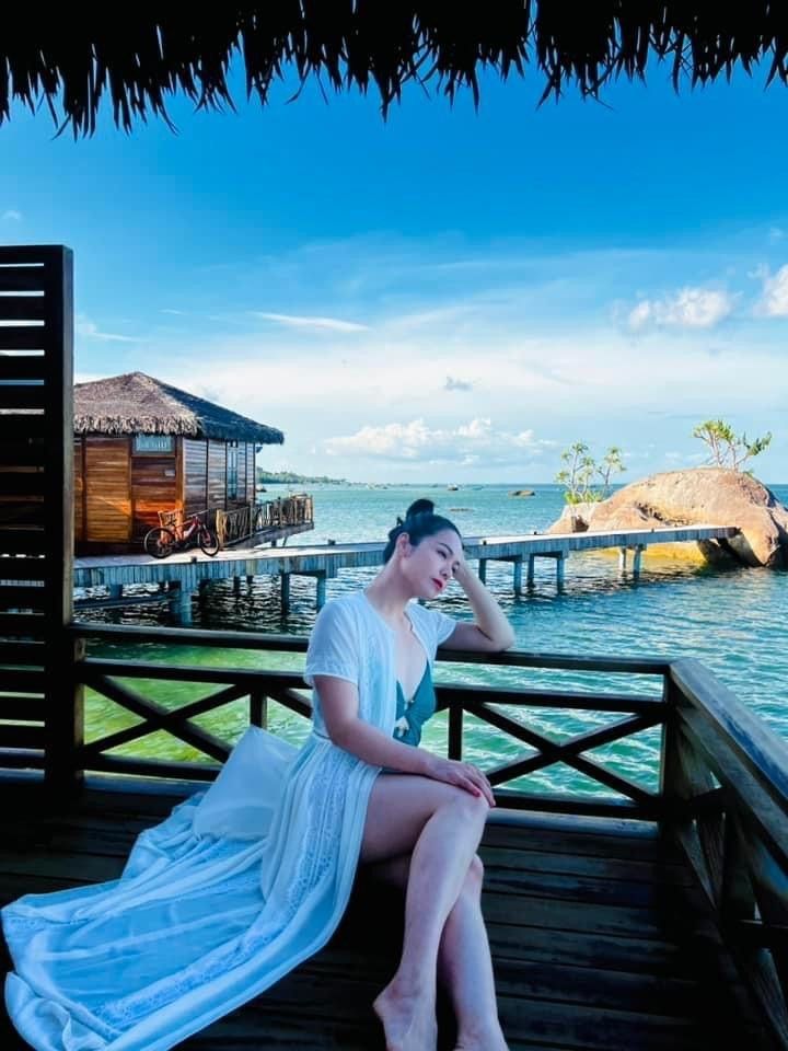 Trang phục bikini gợi cảm, cắt xẻ táo bạo cũng không thể làm khó được nữ diễn viên Tiếng Sét Trong Mưa. Và chẳng riêng gì đường cong gọn gàng, nhan sắc của Nhật Kim Anh cũng trẻ trung đáng ngưỡng mộ.