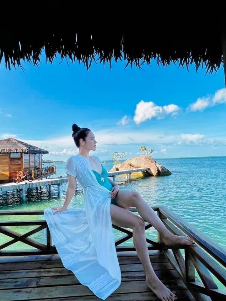 Nhật Kim Anh quyến rũ như nữ thần trong loạt ảnh mặc bikini "nửa kín nửa hở", khoe làn da phát sáng và góc nghiêng gương mặt xinh đẹp.