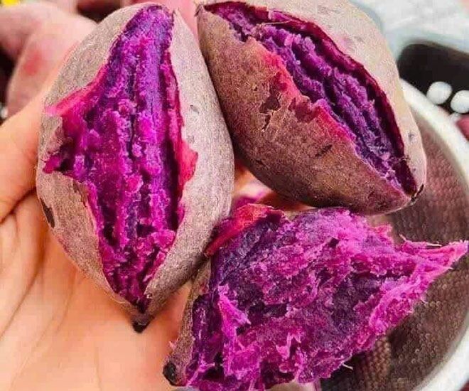 Không chỉ là nguồn cung cấp năng lượng tự nhiên, khoai lang tím còn chứa nhiều dưỡng chất quan trọng như carbohydrate, kali và vitamin C. Đặc biệt, màu tím đặc trưng của củ đến từ anthocyanin – một chất chống oxy hóa mạnh, có khả năng kháng viêm, hỗ trợ giảm huyết áp và bảo vệ cơ thể trước nguy cơ mắc các bệnh mạn tính như ung thư hay tiểu đường. Bên cạnh đó, vitamin C trong khoai còn giúp tăng cường miễn dịch, hỗ trợ hấp thu sắt và bảo vệ tế bào khỏi tổn thương.