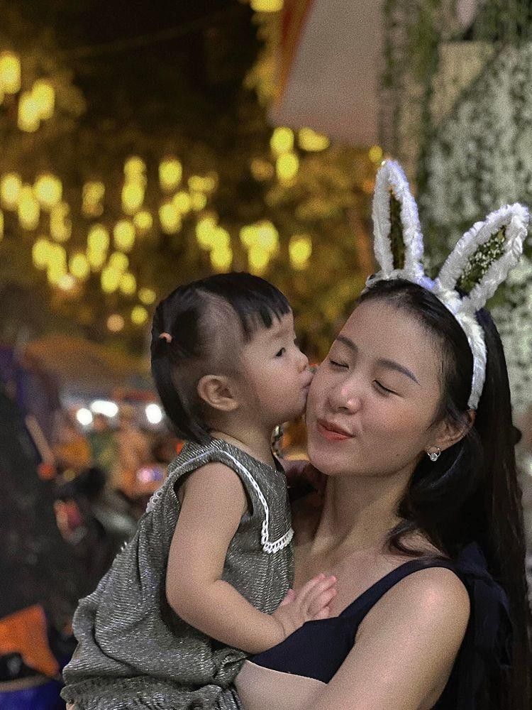 "Chân dung người con gái vẫn hay gọi tôi dậy mỗi sáng bằng một nụ hôn và dành cho tôi ngàn nụ hôn thắm thiết trước khi đi ngủ", Huyền Trang bật mí thói quen của con gái. Có thể thấy bé con là một nhóc tỳ vô cùng tình cảm và quấn mẹ.
