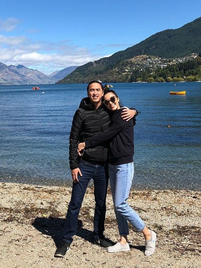 Tăng Thanh Hà diện short jeans trẻ trung cùng áo phông trắng bên cạnh ông xã với chiếc áo sơ mi trắng tinh giản.
