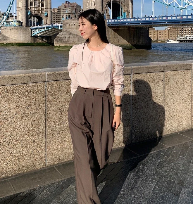 Nếu muốn diện đồ Tết theo hướng sang trọng nhưng vẫn hiện đại, công thức áo blouse kết hợp quần âu ống rộng là lựa chọn rất đáng cân nhắc. Áo blouse mang lại nét nữ tính, trong khi quần âu ống rộng giúp tổng thể trông thời trang và phóng khoáng hơn.