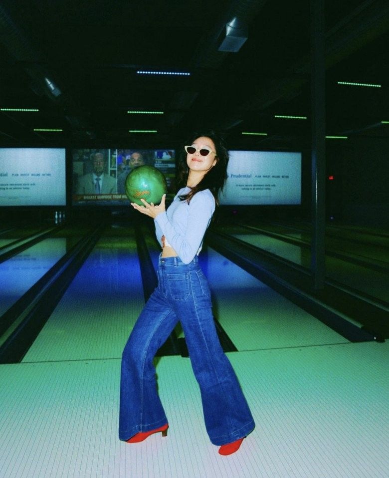 Cô không hề kém cạnh đàn em nổi tiếng khi đứng cạnh, tỷ lệ hình thể vô cùng chuẩn mực.