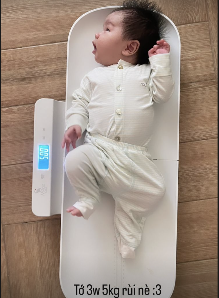 Có lẽ không gì vui sướng hơn khi con sơ sinh ngày càng cao lớn, khoẻ mạnh và cứng cáp. Người đẹp - cựu BTV VTV Hà My vừa vui mừng chia sẻ: "Hê lu mọi người. Con nà Ken Heo - truyền nhân của cậu Lợn. Con 2,5 tháng - 7kg - 62,5cm. Mẹ con dự con sau này 1m9. Các bác thấy sao ạ?".