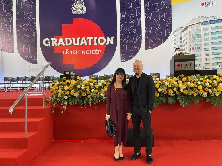 NTK Đức Hùng và vợ đến cổ vũ con gái lớn tốt nghiệp.