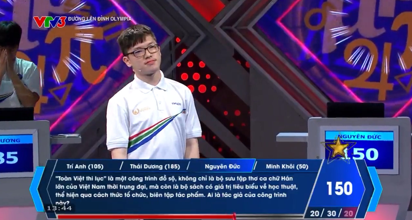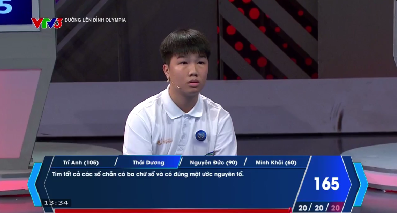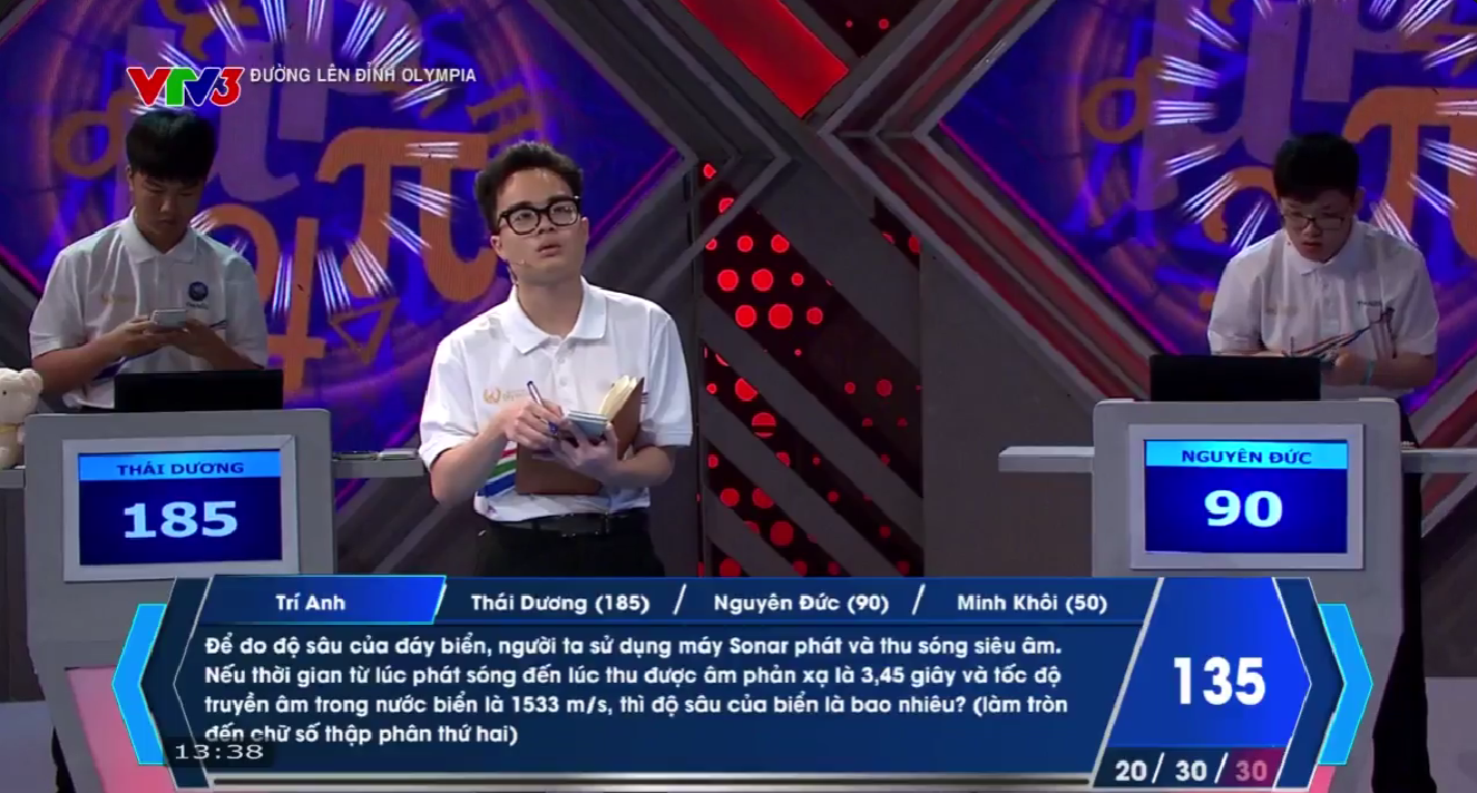 Sau câu hỏi thứ 2 trong lượt thi của Minh Khôi, Thái Dương đã bấm chuông giành quyền trả lời với đáp án chính xác. Thái Dương đã nhanh chóng lấy lại ngôi vị dẫn đầu, tiếp tục khẳng định bản lĩnh ở câu hỏi có giá trị 30 điểm.