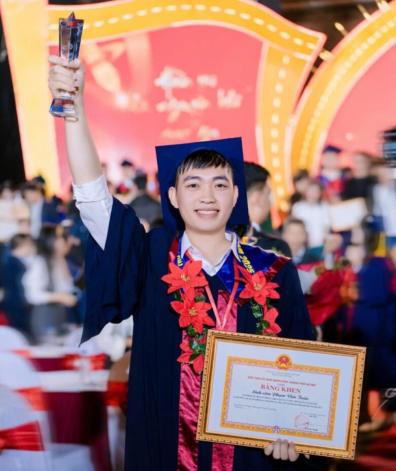 Bằng niềm tin, nhiệt huyết tuổi trẻ và quyết tâm phấn đấu, Tuấn đã viết nên chiếc “CV thanh xuân” rực rỡ, cùng danh hiệu thủ khoa tốt nghiệp xuất sắc được TP Hà Nội vinh danh. Đứng trong hàng ngũ những sinh viên ưu tú nhất Thủ đô, cảm xúc đầu tiên của Tuấn là sự hãnh diện và tự hào. Đó là cảm giác khi những nỗ lực thầm lặng trong thư viện, những đêm thức trắng ôn thi hay những dự án nghiên cứu đầy thử thách đã "đơm hoa kết trái".